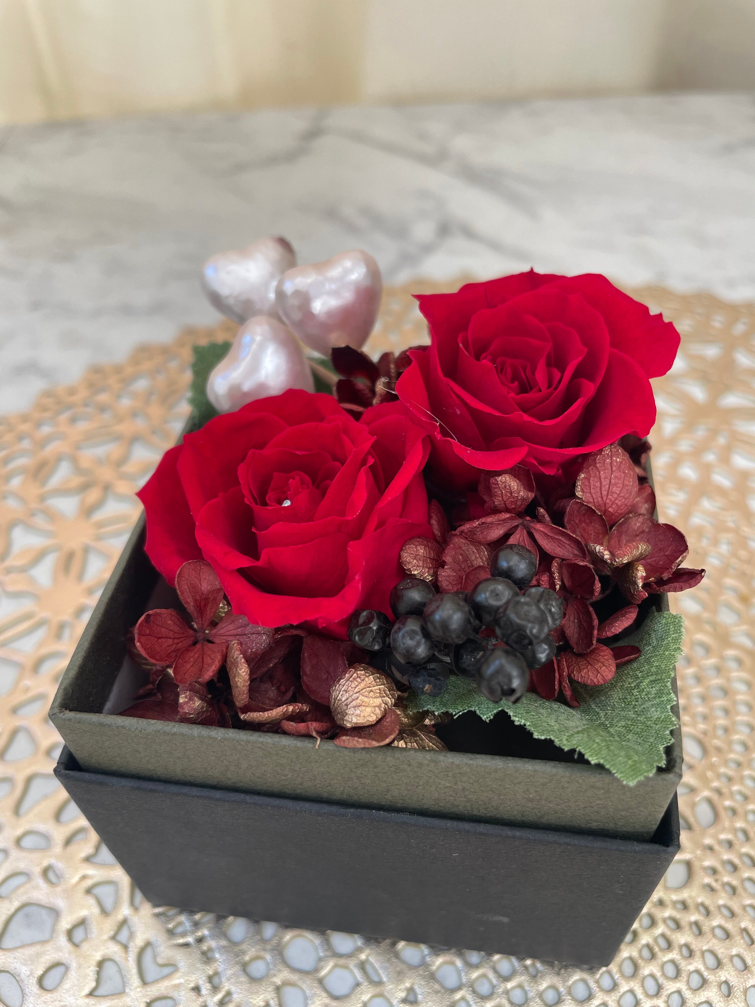 真紅のプリザーブドフラワーを使って大人っぽく仕上げました。